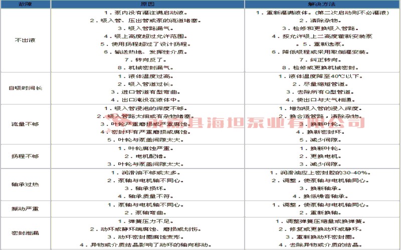 2.泵次使用前必須從排氣羅塞處把泵體注滿溶液。旋緊羅絲,再按轉向標志,啟動電機,按吸程高低不同一般需要2~4分鐘,自動排完空氣,輸送液體,下次啟動則不需引灌。長期不用的泵啟動時,應先打開加水羅絲,檢查泵體是否存在液體,如不足請補滿。