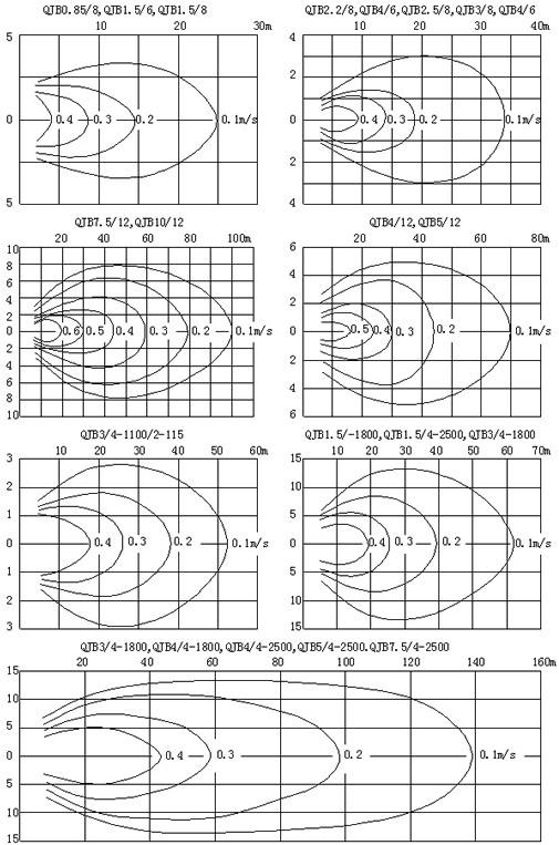 【不銹鋼潛水攪拌機QJB型】流速圖: