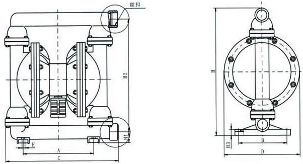 【QBY型工程塑料氣動隔膜泵】結構圖:
