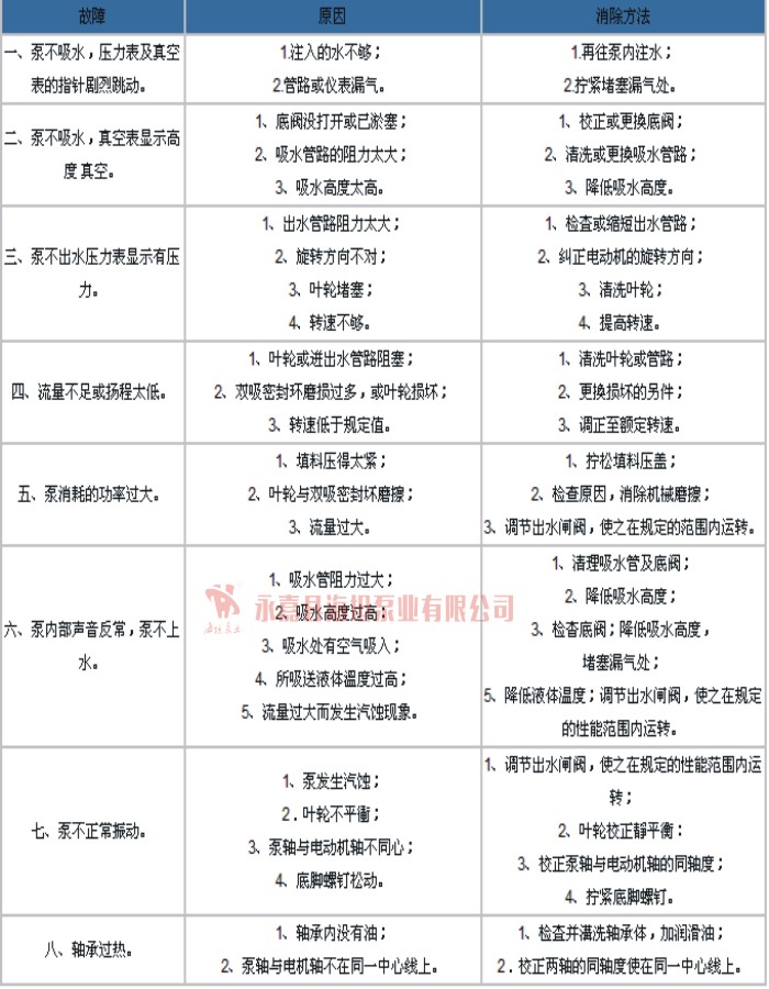 【S、SH型中開式單級雙吸離心泵】故障原因與排除方法: