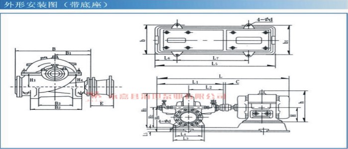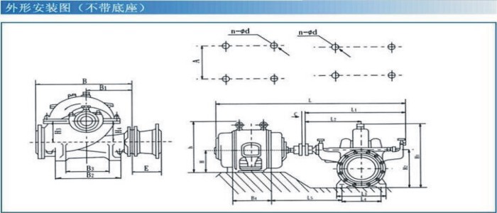 【S、SH型中開式單級雙吸離心泵】安裝尺寸圖: