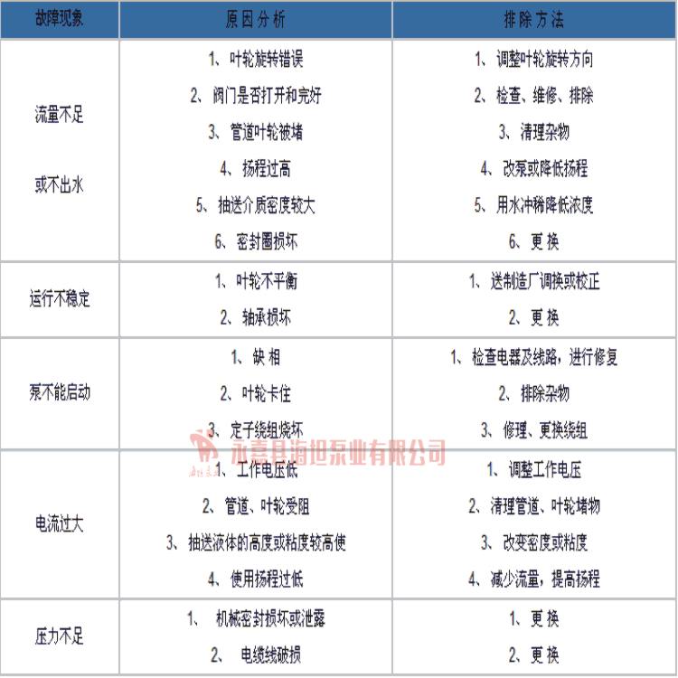 【LW型立式無堵塞排污泵】故障原因及排除方法: