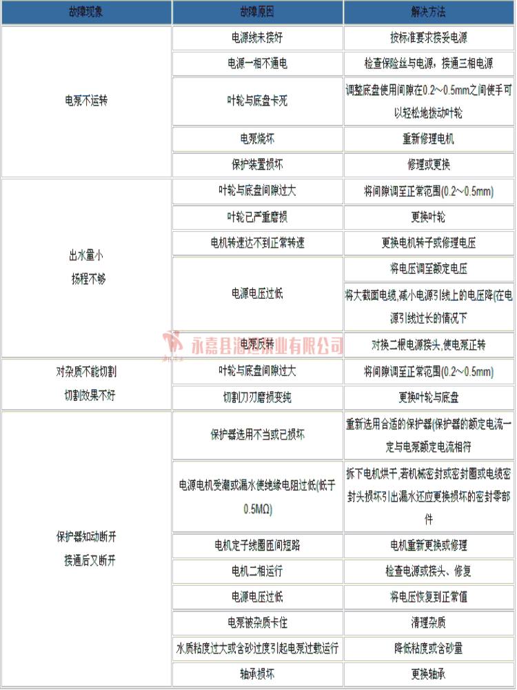 (9)若發(fā)現(xiàn)WQK/QG帶切割裝置排污泵在運(yùn)轉(zhuǎn)時(shí),有不轉(zhuǎn)、保護(hù)器跳閘、保險(xiǎn)絲燒斷等不正常現(xiàn)象,應(yīng)立即切斷電源,檢查電源保護(hù)器接線等是否有問(wèn)題