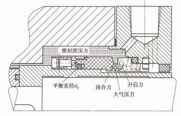 (2) 端面比壓pc  端面比壓pc是指作用在密封環(huán)帶上單位面積上凈剩的閉合力。