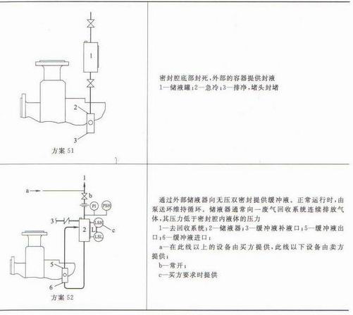 單端面機械密封、無壓雙密封的內測密封的密封輔助管路系統的選擇見表1-24,節流襯套、輔助密封裝置和雙密封的輔助管路系統的選擇見表1-25.