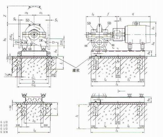 圖6-27   PCP-O-□□□增壓泵機組外形尺寸圖