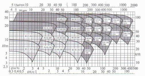 將每種系列泵的*佳工作(性能)范圍繪于一張坐標圖上稱為型譜。為了使形圖協調,高揚程和大流量時的工作范圍不致過大,通常采用對數坐標表示,一般每種系列泵只有一個型譜。