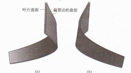 上文已經(jīng)論述了葉片加厚的基本原理,此不敖述。這里使用"偏置曲面”命令,選擇葉片曲面進(jìn)行曲面的偏置。偏置曲面的方式有“測(cè)量”“公式”、“函數(shù)”,“參考”,使用“函數(shù)”方式,可以更加逼近真實(shí)情況。我們采用較為簡(jiǎn)便的方式,即均勻加厚2mm的方法,偏置出的曲面如圖8-27所示。