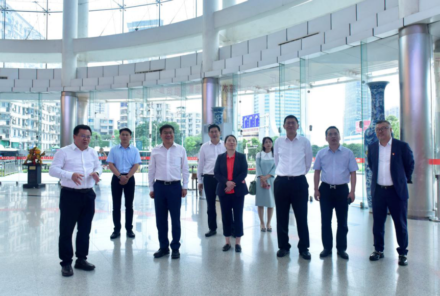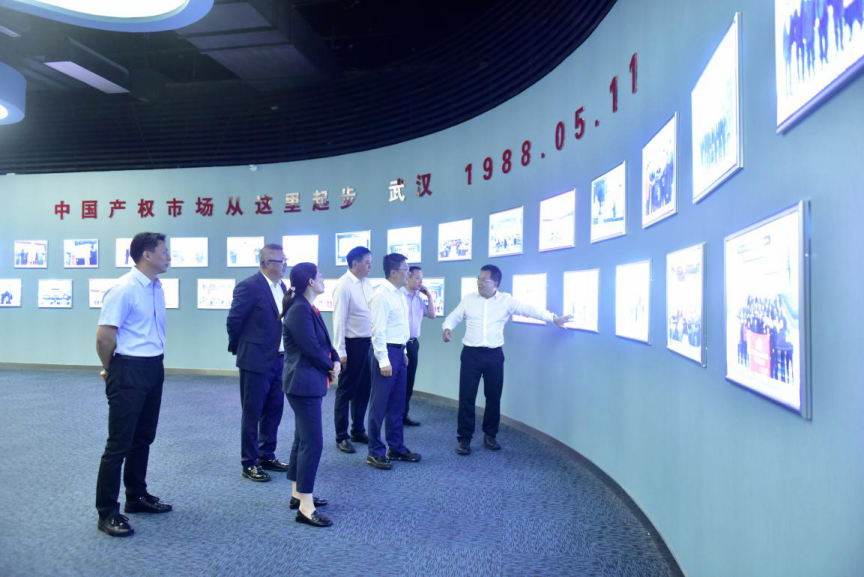尉立東一行在武漢光谷聯合產權交易所黨委書記、董事長曾慶祝,光谷聯交所副總經理兼總法律顧問、武交中心董事長、全聯并購公會常務理事龔波,武交中心總經理張京念等的陪同下,先后參觀了光谷資本大廈一樓交易大廳和“中國產權市場從這里起步"宣傳展示墻。在武交中心信息發布大廳,聽取了武交中心董事長龔波關于湖北區域性股權市場建設歷程、平臺功能、運營概況和發展特色等方面的情況匯報。