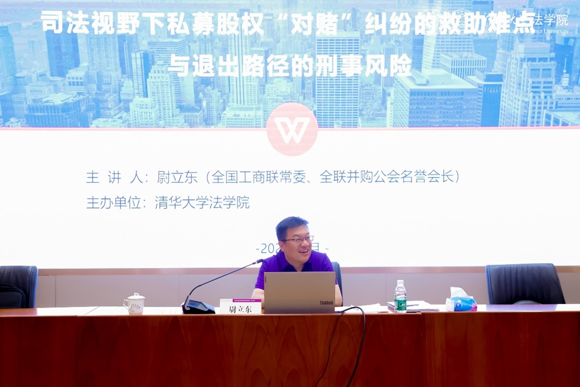 8月16日下午,全國工商聯十三屆常委、全聯并購公會名譽會長、尚融資本創始及管理合伙人尉立東受邀在清華大學法學院講授《司法視野下私募股權“對賭”糾紛的救助難點與退出路徑的刑事風險》課程。